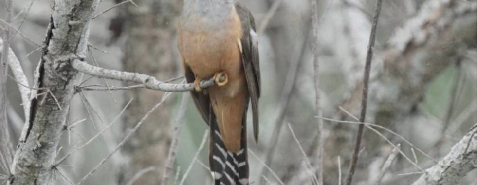 【飛羽之美】八聲杜鵑i愛種樹2025年5月20日讀畢需時 1 分鐘鳴聲先聞其音,難見其身——八聲杜鵑是台灣的迷鳥,並非長期居留的物種,卻偶爾現身於我們的生活周遭。牠多棲息在開闊的樹林、墾殖地,甚至能適應人類聚落的環境。八聲杜鵑以昆蟲與果實為食,活動時常隱身於樹冠層濃密處,身影難尋,但其鳴叫卻十分鮮明獨特,尾音節奏鮮明,常為「四快四慢」的八聲節奏,這也正是牠名字的由來。在春末夏初的清晨林間,若耳邊傳來節奏分明的八聲鳴唱,別急著尋找牠的身影——牠或許早已悄悄停駐在你身旁的一棵枝頭上。#飛羽之美 #高雄市愛種樹協會 #八聲杜鵑 #寫真